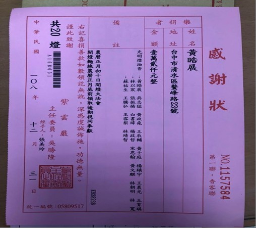 超暖舉動!清水派出所所長黃晧展為準備同仁的新年禮物,苦思良久認為應有助於同仁執勤安全較符合新年禮物的需求,突然靈光乍現,想到轄內有一座擁有350餘年歷史且為清水當地最主要的信仰中心、主祀觀世音菩薩的紫雲巖,便特地為全所20位同仁在廟裡安上光明燈,希望藉由觀世音菩薩神威顯赫,能庇佑員警執勤平安、轄區治安平穩。
