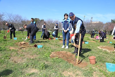 市府建設局今日在新社區大復街與興社街二段旁空地,舉辦「台日文化經濟協會捐贈大漁櫻苗木植樹活動」,種下100株大漁櫻樹苗。