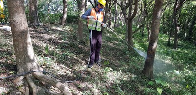 觀旅局強調,現場施作藥劑人員皆受過環保局專業訓練,目前已針對感染白粉病、褐根病的樹木灌注藥劑。對於感染白蟻情形較嚴重的樹木,也沖洗蟻道及噴藥改善。若民眾發現樹木上有蟻道,切勿擅自用藥,請通報市府派員處置,維護樹木健康。