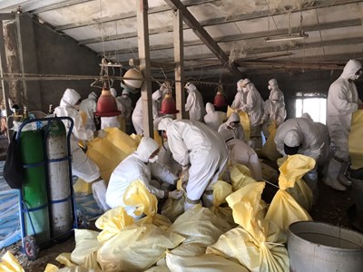 台中市動物保護防疫處1月12日接獲通報,大安區一土雞場疑似發生禽流感案例,隨即派員採樣送驗,並進行動物移動管制。昨日檢驗報告出爐,確診為禽流感,今日動員動保處、環保局、警察局、衛生局、區公所等跨局處約40人,前往撲殺土雞、銷毀飼料,雞隻屍體全部密封送化製廠處理,不會流出市面。