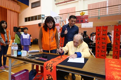 台中市龍井區公所今日在公所舉辦「109年歲末迎春名家揮毫贈春聯」活動,邀請楊建等30位書法名家及18位龍井區藝文季書法比賽得獎學生現場揮毫,送出1300張春聯及年畫,為即將到來的農曆春節增添喜氣。