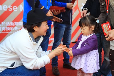盧市長表示,一中商圈好吃、好玩又好買,新年市集活動期間還可天天抽電視,歡迎來遊玩。一中商圈今天舉辦活動開幕儀式,盧市長帶著笑容一一發送888個「愛鼠發財紅包」,許多領取紅包的民眾紛紛拿起手機開心與盧市長自拍,盧市長來者不拒,看到孩子也親切蹲下將小紅包送到小朋友手上,氣氛歡樂,包括市議員陳政顯、經發局長張峯源均到場共襄盛舉。