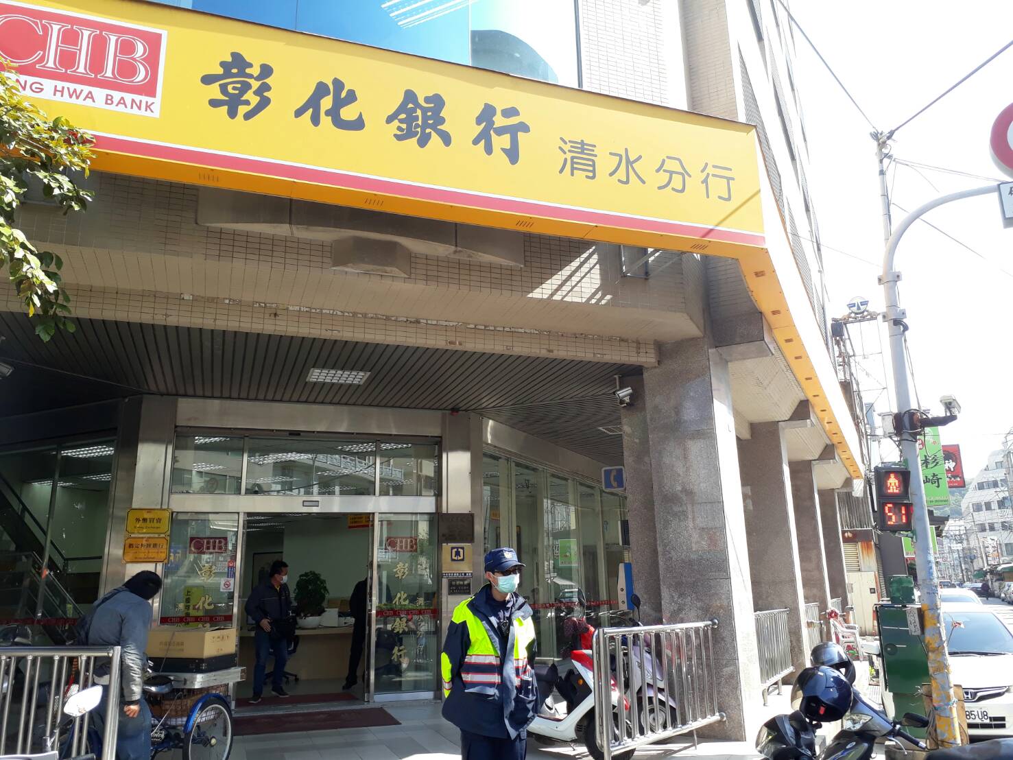 臺中市清水警分局轄區涵蓋沙鹿、清水、梧棲等區,金融機構就高達45家之多,農曆春節,為加強109年加強重要節日安全維護工作,為守護民提領、存款安全,清水警分局仍持續規劃警力於各金融機構執行安全守望勤務,讓民眾持續安心過好年。