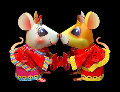 市府地稅局表示,今年鼠年小提燈以民間故事「老鼠娶親」為發想,創作出鼠新郎與鼠新娘2種不同造型的小提燈,只要上下擺動提把,2隻小老鼠就會彎腰鞠躬,互相拜年,也能當作手偶把玩,整體設計可愛又有趣。