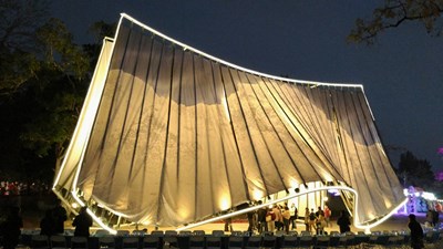 農業局表示,燈區除展出建築師王銘顯團隊與日本藝術家新山拓合作打造的15米高藝術燈組外,農業局也結合在地農村生活,以台灣傳統捕魚工具「魚筌」為題,與農友、社區協力創作魚荃燈組,希望透過花燈,讓民眾認識、善待土地,更加親近大自然。