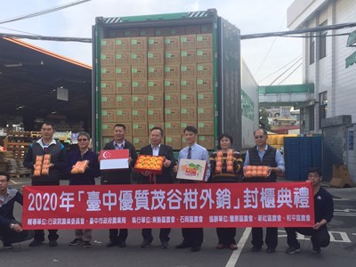 台中市茂谷柑栽培面積552公頃,年產量達1萬711公噸,台中市政府農業局今年已陸續輔導農民團體外銷中國大陸、香港等地,今日再輔導東勢區農會將18公噸台中茂谷柑封櫃啟航至新加坡,今年預定外銷新加坡數量共60公噸,希望帶動台中農產業發展。