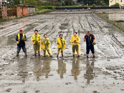 「一起彎腰體驗農作!」農業局表示,市府積極推動活化農地、營造農村景觀、宣導生態保育等理念,為讓更多學生拉近與食物、農業、自然及土地的關係,特別與外埔區農會合作推動「彩繪稻田插秧體驗活動」,邀請當地學童一起體驗插秧,從中認識在地文化。