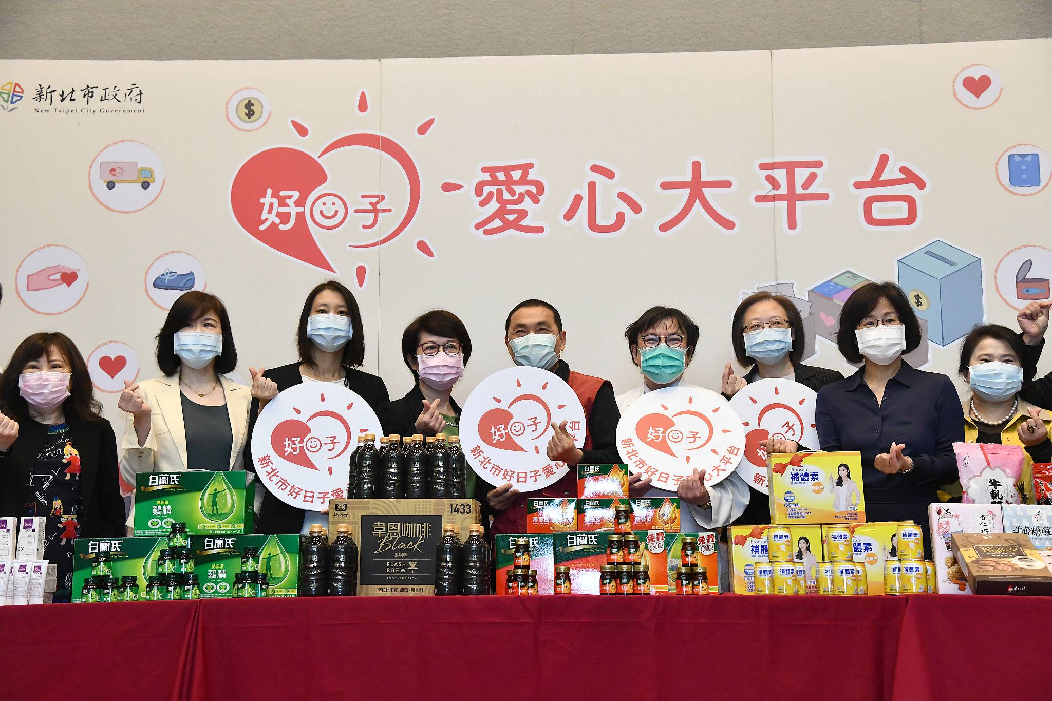 為了體恤第一線防疫人員的辛勞,新北市府發起向第一線醫護人員致敬的活動,廣獲富邦慈善基金會、思耐得生技公司、白蘭氏三得利公司、黑松企業、淇譽電子公司等11家企業熱烈響應,今日於新北市府舉行捐贈記者會,由侯友宜市長代表受贈並頒發感謝狀以表謝忱。