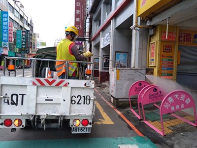 台中市政府環境保護局防疫消毒大隊針對轄內581處交通場站、大型營業場所、學校、公務機關加強消毒,並針對交通部和中央流行疫情指揮中心4月26日公布示警熱點,在台中市19處人潮聚集處,加強執行戶外公共環境消毒作業,全力守護市民健康。