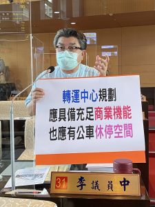 李中表示,2002年的新疆烏魯木齊只有100萬人口,他們的客運轉運中心就有八層樓的空間可利用,反觀已經有280萬的台中市,我們的臺中火車站轉運中心竟然只有一層樓四個月台,即將在明年底興建完成的豐原轉運中心,也僅有一層轉運空間,商業空間也只有一層,完全浪費該建築基地的容積,也浪費每天進進出出龐大的人流量。