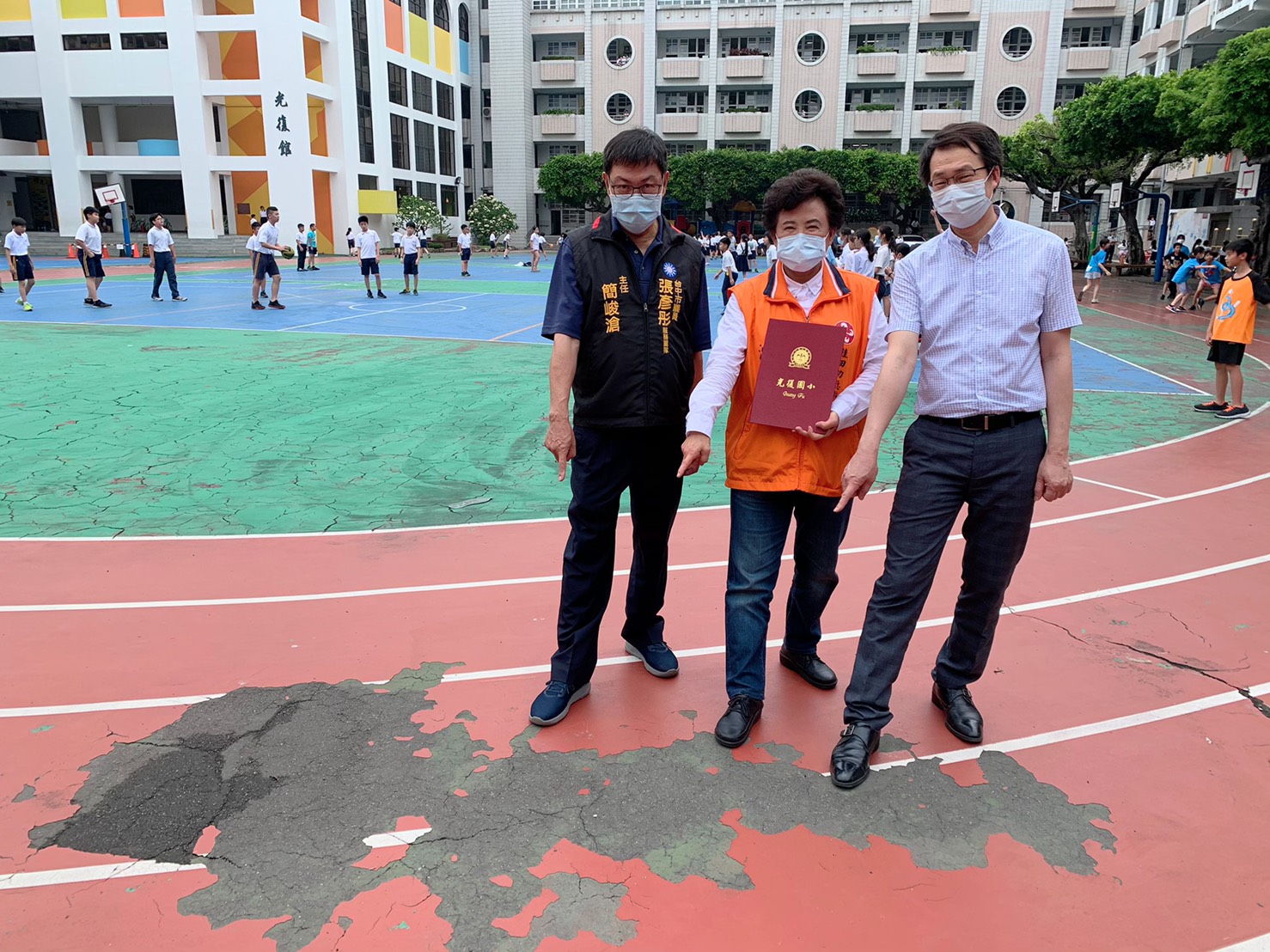 這不是沈智慧第一次協助光復國小了,有百年歷史的光復國小,除了校長室滿滿的獎盃與榮譽,也有因長時間使用而損壞、滿是裂痕破損的操場。為了讓孩童能安全的運動,沈智慧說,她去(108)年當立委期間來學校考察了兩次,終於成功幫學校爭取到了教育部體育署及台中市教育局共280萬的經費,將在今(109)年7~8月暑假期間施工,讓孩子在下學期就能使用安全的操場,讓百年校園再度綻放活力。