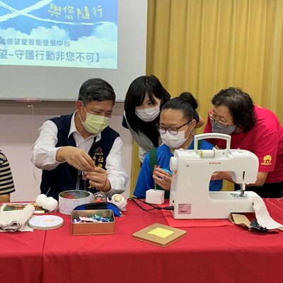 彭局長指出,專業服務需要充足的資源作為後盾,今年疫情衝擊弱勢照護機構,政府推出紓困措施,也需要民間力量支持,感謝宇程紡織有限公司連續十一年,固定捐助公益環保包做為捐款者贈禮,信望愛智能發展中心也贊助廠商愛心,結合學員學習成果,鼓勵大家發揮愛心。
