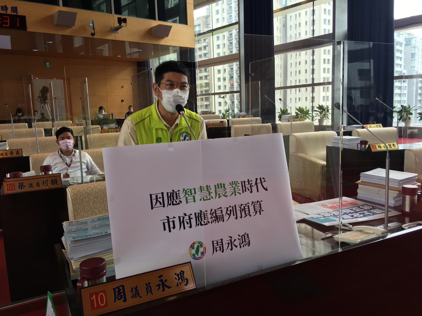 台中市議員周永鴻在今日財政經濟委員會業務質詢時,為農民請命,要求市府應積極推動智慧農業,讓農業發展升級,也吸引青年投入農業。周議員建議,市府應先建立民間各單位的協調平台,並編列預算推動相關專案計畫。