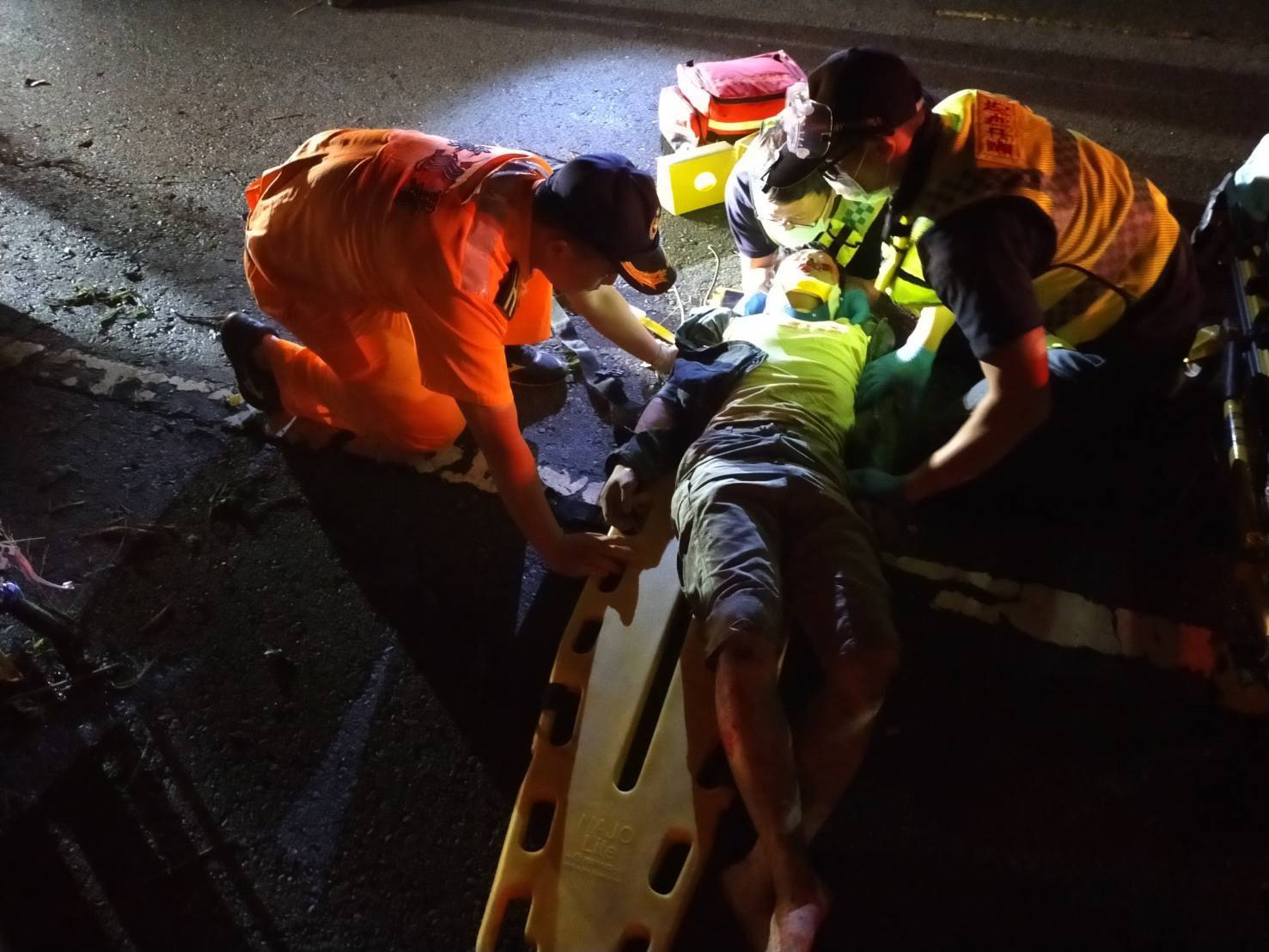 昨日夜間8時許,第三岸巡隊麗水安檢所上兵李福龍實施自主跑步訓練時,發現乙名男性民眾騎乘機車時,疑似因雨後路面濕滑,導致失控摔車受傷無法行動,李員見狀立即回報安檢所派員至現場協處,並實施交管,救護車抵達現場後,初步研判該名男性有頸椎受傷情形,頭部多處挫傷流血、腰部劇烈疼痛及雙腳多處擦傷,現場海巡人員協助將受傷民眾搬運上救護車,後續由消防局龍井分隊載往童綜合醫院急救。