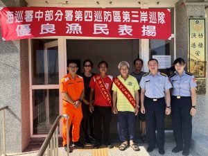 本次接受表揚漁民為松柏漁港「益豐邦」林順益船長,其108年8月得知松柏安檢所前方海域有沈船載浮載沉,且持續往南漂移,主動開船至事故海域以浮標燈標示沈船位置,避免往來船筏航行遭受影響;另2位漁民為梧棲漁港「新凱勝2」洪進祥船長及「合滿福2」俞福財船長,108年7月協助支援本隊海域救生演練,3位漁民殊值表揚,以表彰其熱心公益的義行。