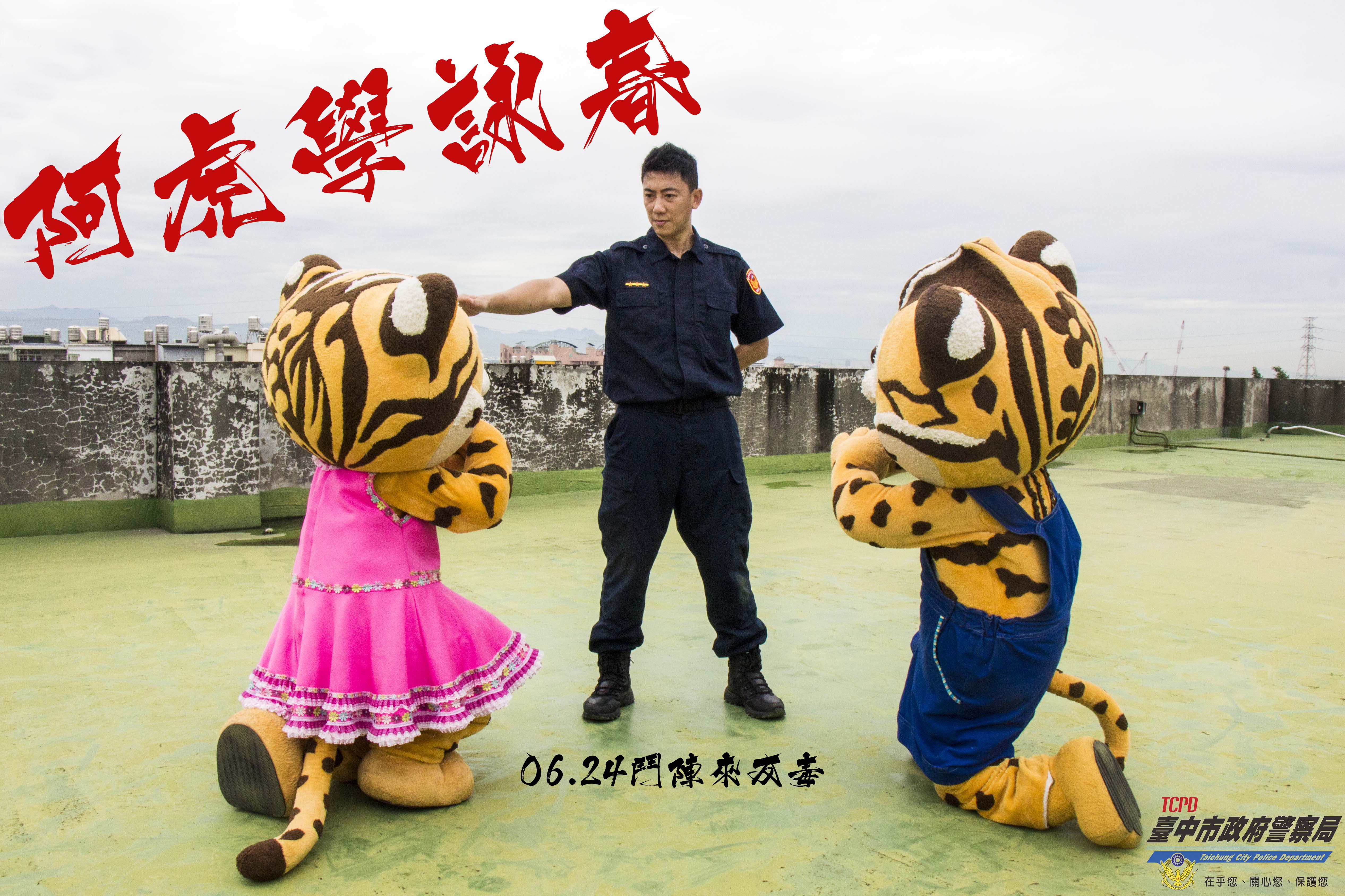 為響應626國際反毒日,臺中市政府警察局自編、自導、自演反毒宣導短片「阿虎學詠春」,短片敘述臺中市吉祥物石虎家族中的樂虎與來虎,看到帥氣的警界「甄子丹」(臺中市政府警察局大甲分局教官陳昱佑飾演)演練詠春拳,心生崇拜而想拜師學藝,經通過反毒知識考驗後,獲得入門資格。