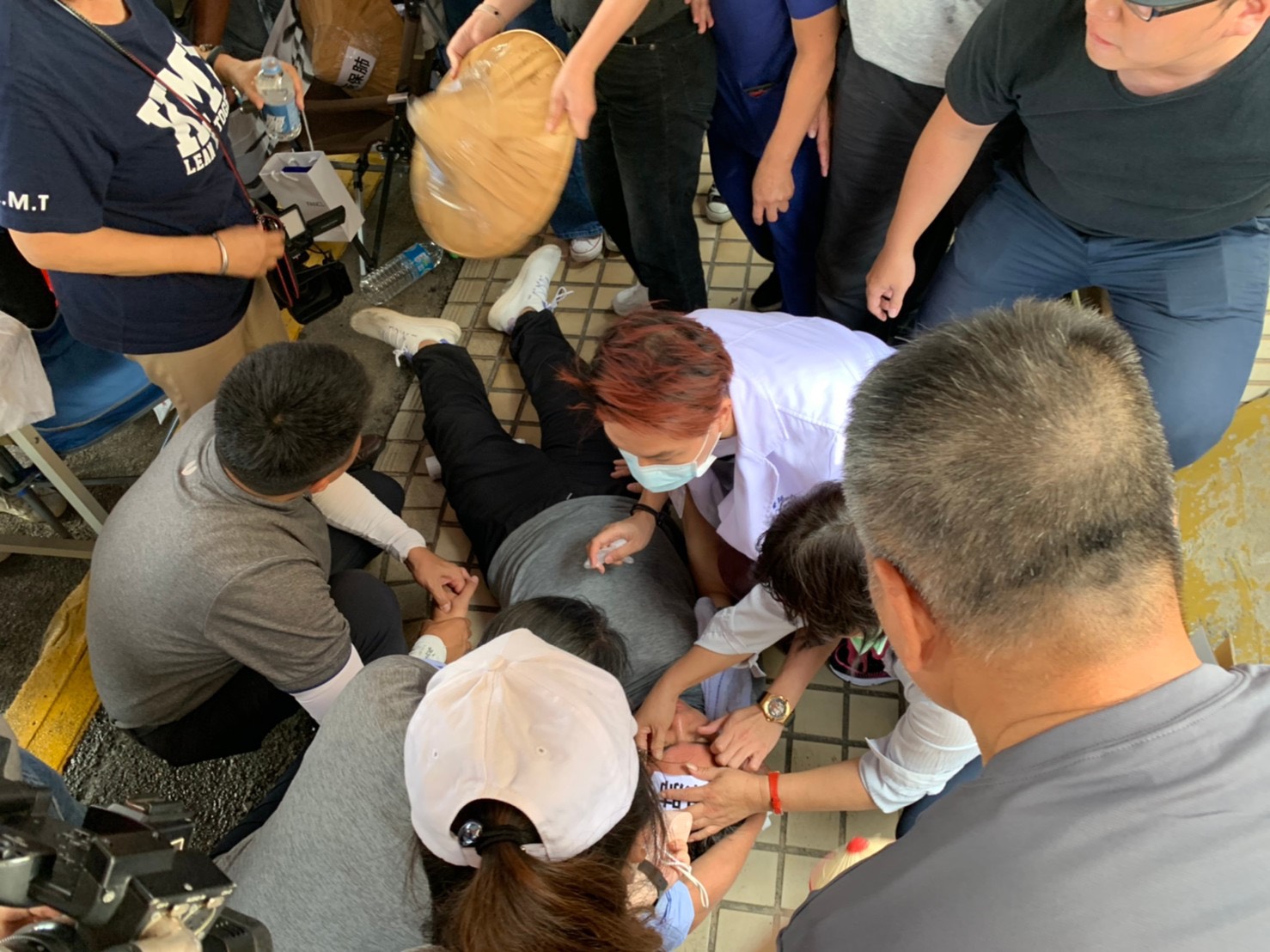台中市議員黃健豪、羅廷瑋抗議台電違法重啟中火2號機組,29日中午起開始絕食,30日中午11點多,曾捐肝救父的黃健豪全身狂冒汗、嘴唇發白,絕食28小時後,黃健豪暈倒送醫急救,全場亂成一團。
