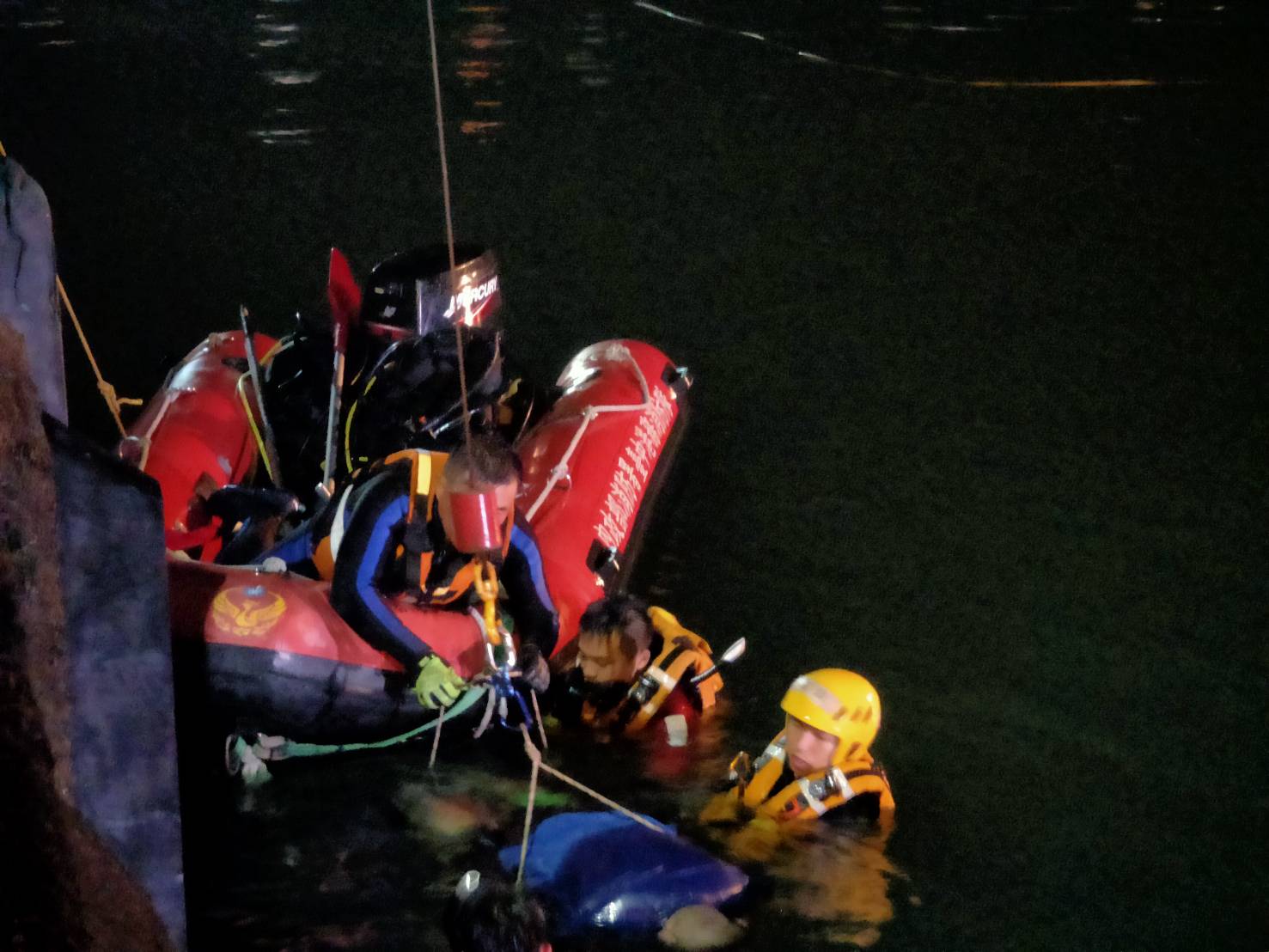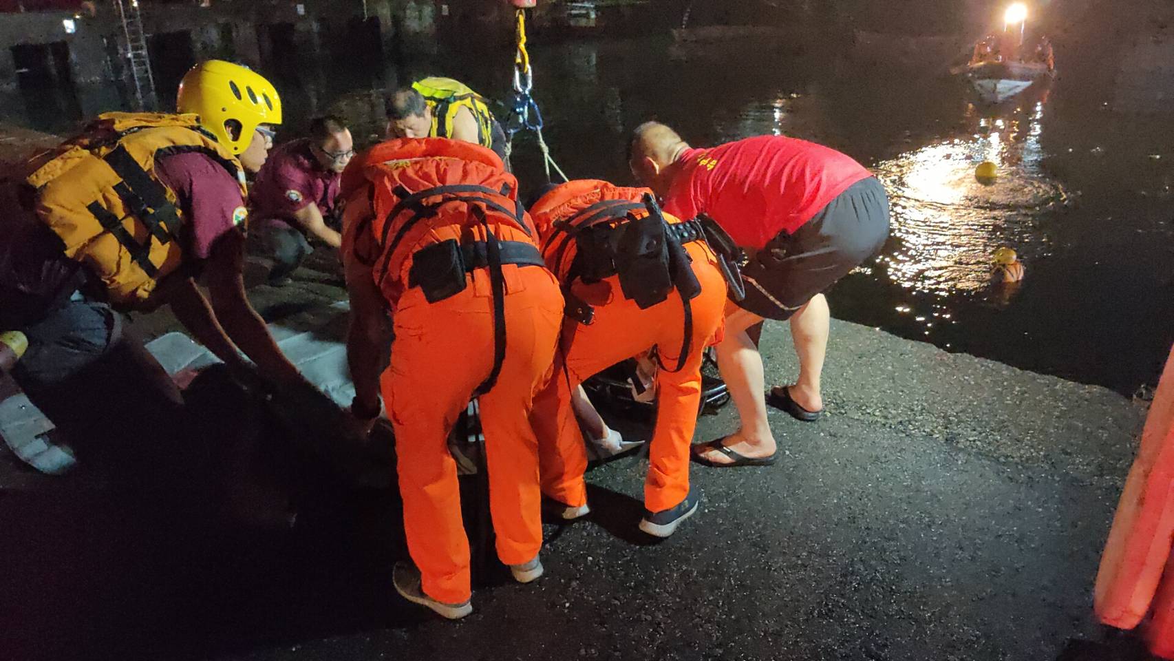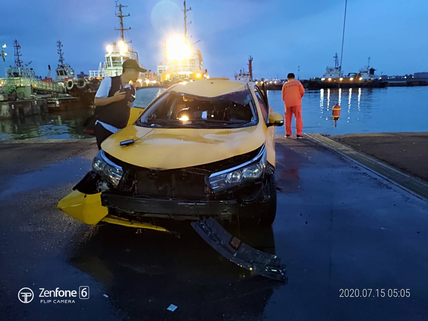 車上的李姓船員在海中漂浮一小時,在水中緊捉岸際,等退潮後爬梯上岸,凌晨1點13分打119求救,海巡人員到場發現,52歲李男有酒味,台中港務消防隊和海巡人員到場搜救,並派大型吊車協助,今天凌晨3點多,找到計程車沈入位置,陸續在車內拉出昏迷的52歲黃姓船員、71歲許姓船員和41歲謝姓司機,拉上岸CPR仍無效,送醫急救不治。