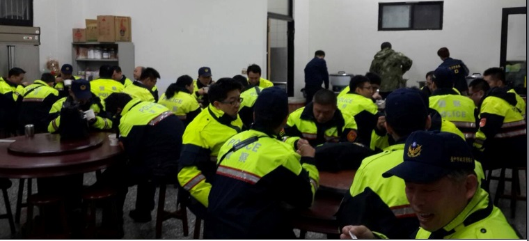 圖說:執勤員警們喝熱湯暖身。(記者陳羿翔翻拍)