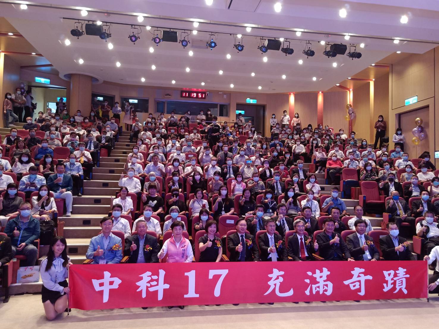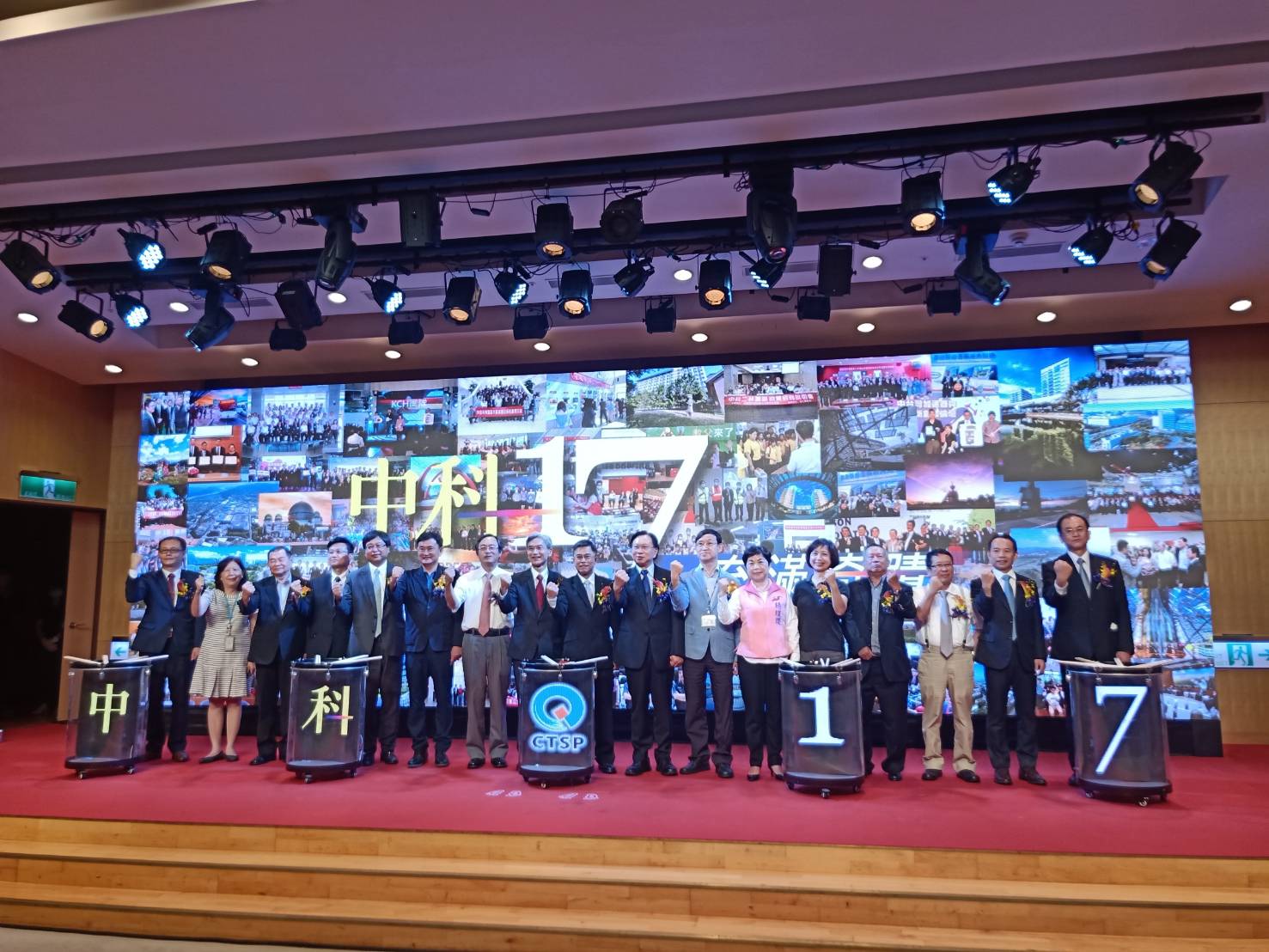 中科邀請17位貴賓以震撼力的擊鼓聲,進行「中科17、擊響未來」共同擊響中科創造產業永續創新的願景,象徵中科集結產官學研跨界能量,推動跨域合作,期許以17年來的開發成果為基石,引領科技新創,再創大肚山傳奇。