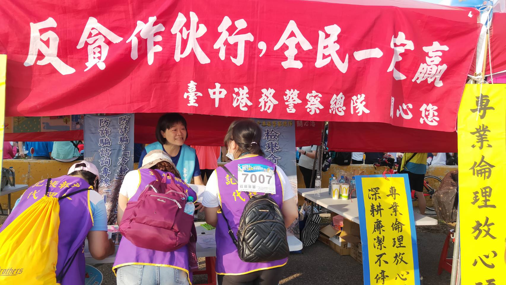 內政部警政署臺中港務警察總隊為推動清廉的觀念能深植社會各個層面,特別結合「財政部109年統一發票盃路跑」活動設攤宣導,現場提供具有風車大道特色文宣以及精美小禮物,讓參與路跑者驚艷!