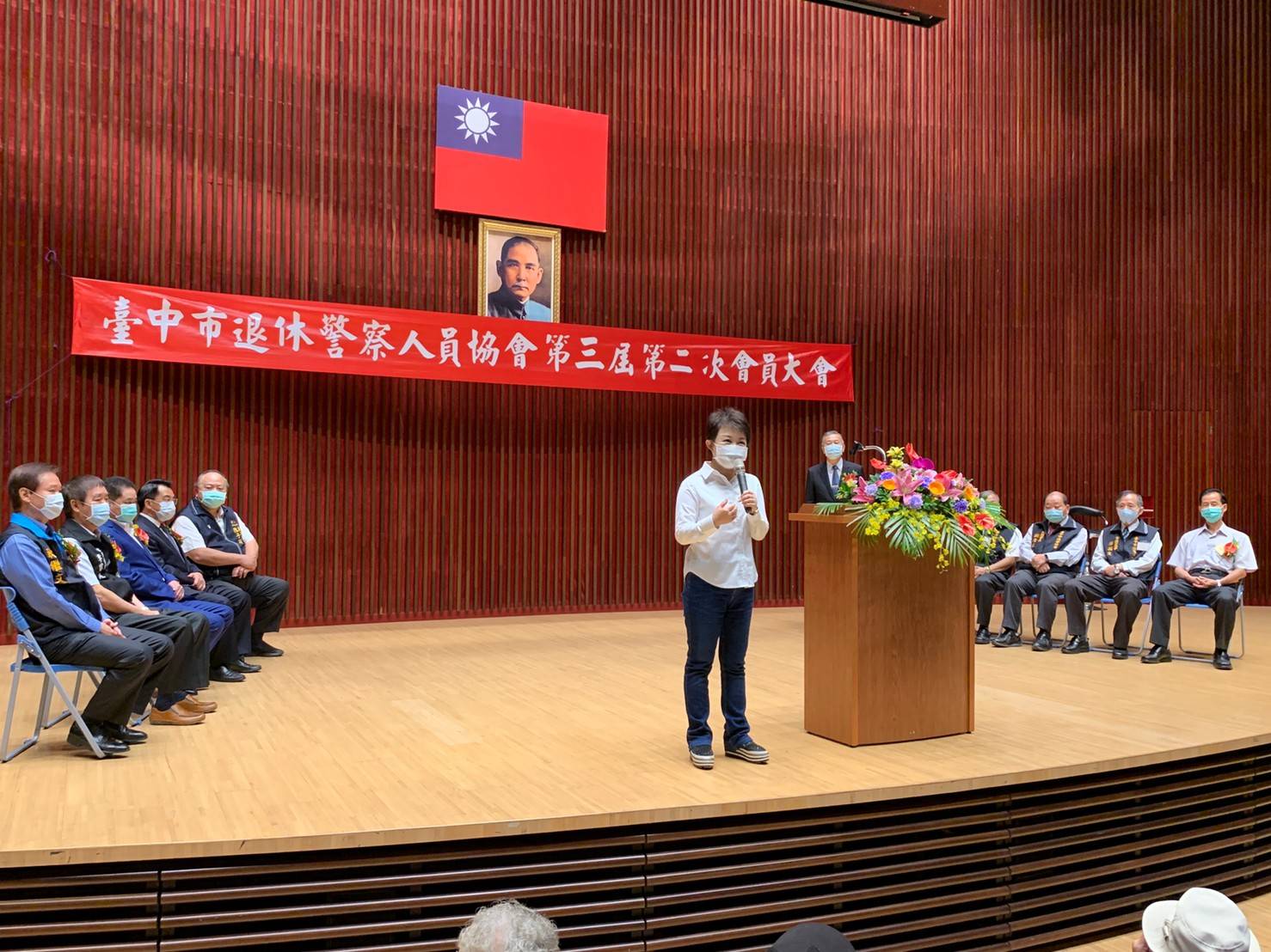 陳副市長當日也蒞臨會場向退休警察人員致意,並在會中表示警察局在楊局長的卓越領導下,臺中市的治安、交通狀況均有顯著的進步,各項指標數據在六都中都是名列前茅,這除了是警察局同仁的努力成果外,更是退休警察前輩過去所奠定的根基,藉由這次大會表達對所有會員的敬意與感謝。
