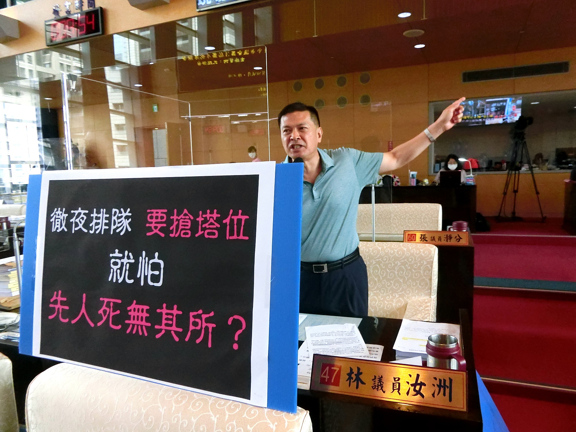 民政局吳世瑋局長則回應,非常認同林汝洲議員的建議,對於徹夜排隊的家屬感到非常抱歉,也希望相關情事未來不會再度發生,相關建議會盡快請同仁辦理。