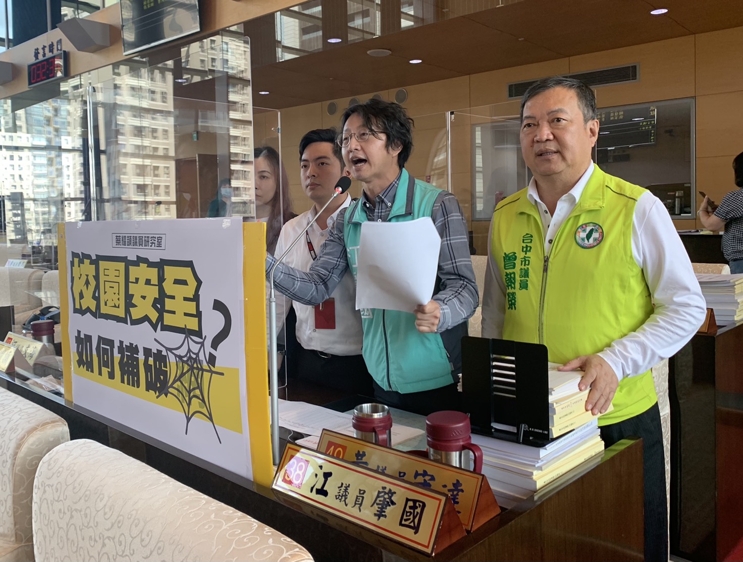 臺中市議會今日進行警消環衛業務質詢,民進黨市議員員江肇國、曾朝榮、蔡耀頡、賴佳微、張家銨、周永鴻關切校園安全與預防機制。有鑒於近日臺南長榮大學僑生擄殺案件,臺中應引以為戒,除了警察局單方面的作為,建議教育局應積極配合。