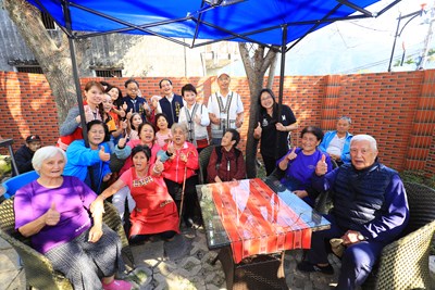 盧市長今日抵達洛卡賀,首先與在庭院中做日光浴的長輩們話家常。機構服務人員向盧市長介紹機構環境,市長也與長輩親切互動,氣氛溫馨熱絡。