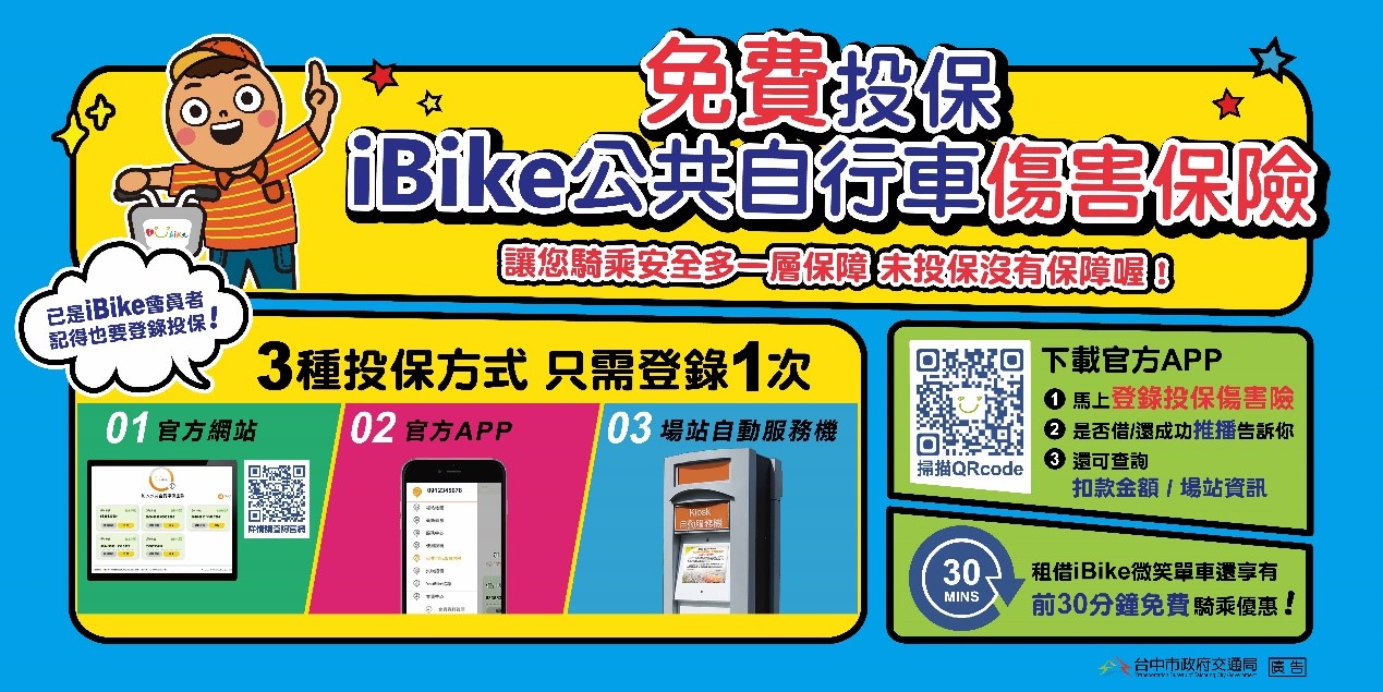 「傷害保險」投保需提供被保險人個資,微笑單車公司已於官網(https://i.youbike.com.tw/home)、各租賃站主機(Kiosk)及官方APP開放登錄身分證字號、居留證號及生日等個資,手續簡單又多一層保障。另提醒保險公司理賠程序將調閱事故當次iBike租借紀錄、醫療證明與登錄卡片個人資料是否相符,因此呼籲民眾注意所使用租借iBike之卡片與平台個資登記應為同一人,才可享有保險權益。