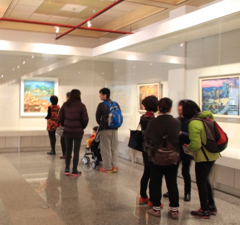 圖說:民眾觀賞展出畫作。(記者楊川欽攝)
