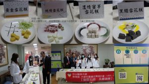 自106 年起執行教育部大學社會責任實踐計畫(簡稱USR),瞄準台中市石岡區已深耕2年,並於本月初(11/7)成立「幸福學堂」場域據點,正式揭牌啟用!中山醫大創校以來以培育醫學人才為職志,不僅針對校內的學生,對於石岡國中小的醫學教育亦同樣關注;藉由舉辦營隊、食農教育,提升石岡地區新生代的醫學知識水平。中山醫大除了積極辦學外,在實踐大學社會責任上之付出更是不遺餘力,本著「提升石岡醫療,優化在地人文,孕育醫學人才,實踐社會責任」四大宗旨,響應教育部的號召加入USR的推動,將醫學大學的資源帶入石岡地區。目前已聚焦石岡居民的生活層面,全方位從營養、從醫學、從各個領域,用醫學大學專業的能力深入社區,目標打造宜居石岡、永續健康的環境。本計畫針對石岡在地高齡化議題,透過議題盤點了解長輩普遍有肌少症的狀況,因此高蛋白飲食營養格外重要。雪花糕乃高蛋白軟質飲食的最佳代表,不僅成份單純(牛奶及玉米粉),亦可兼顧營養與趣味性。結合本年度吞嚥主題,固態雪花糕符合軟食標準,可避免長輩於食用時嗆到、又許多人有不敢食用牛奶、或是有乳糖不耐症的症狀,營養系歐珠琴老師帶著學生討論新配方及搭配方法,利用石岡在地農產及常食用的食材,將牛奶配方改變成「豆漿」,讓接受度更廣,且口味多元,增加新鮮感,成功讓長輩增加攝取量。經過反覆的練習及調整,計畫學生拍攝雪花糕教學影片提供給石岡社區,同時親自進入場域實作教學,並與長輩交流,使成果更加貼近社區長輩需求。