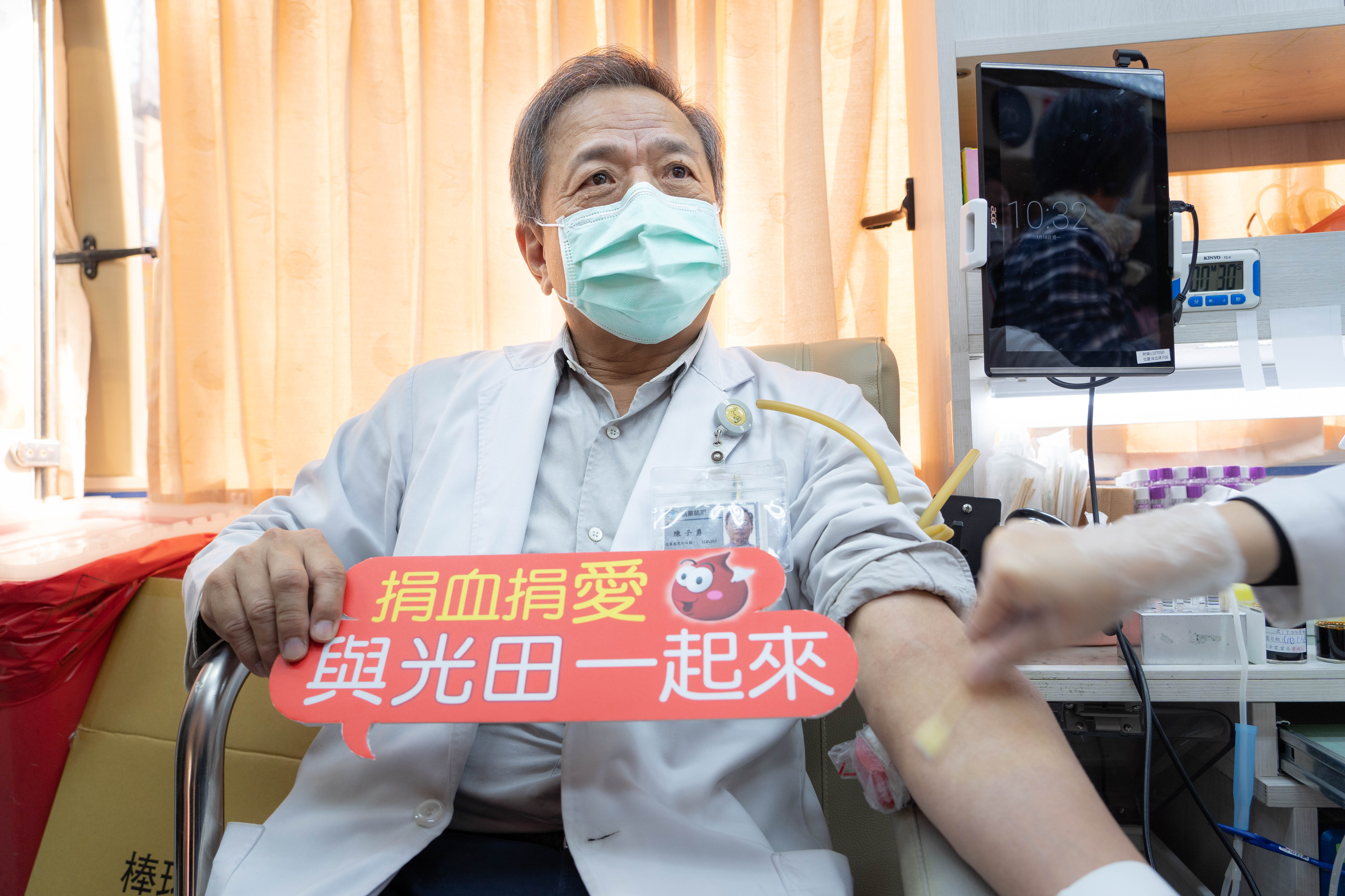 為幫助舒緩血荒,光田綜合醫院沙鹿院區院長陳子勇捲起袖子帶頭捐血,副院長鍾元強、醫護與行政人員也陸續加入捐血行列。陳子勇院長表示最近因氣溫驟降,醫療用血需求大增,藉由與今年成立滿20周年的環台醫療策略聯盟聯合舉辦「醫護相挺 好血有你 環台二十 熱血無限」活動,號召院內醫護人員、員工站出來,一同為血庫貢獻心力,非常有意義。