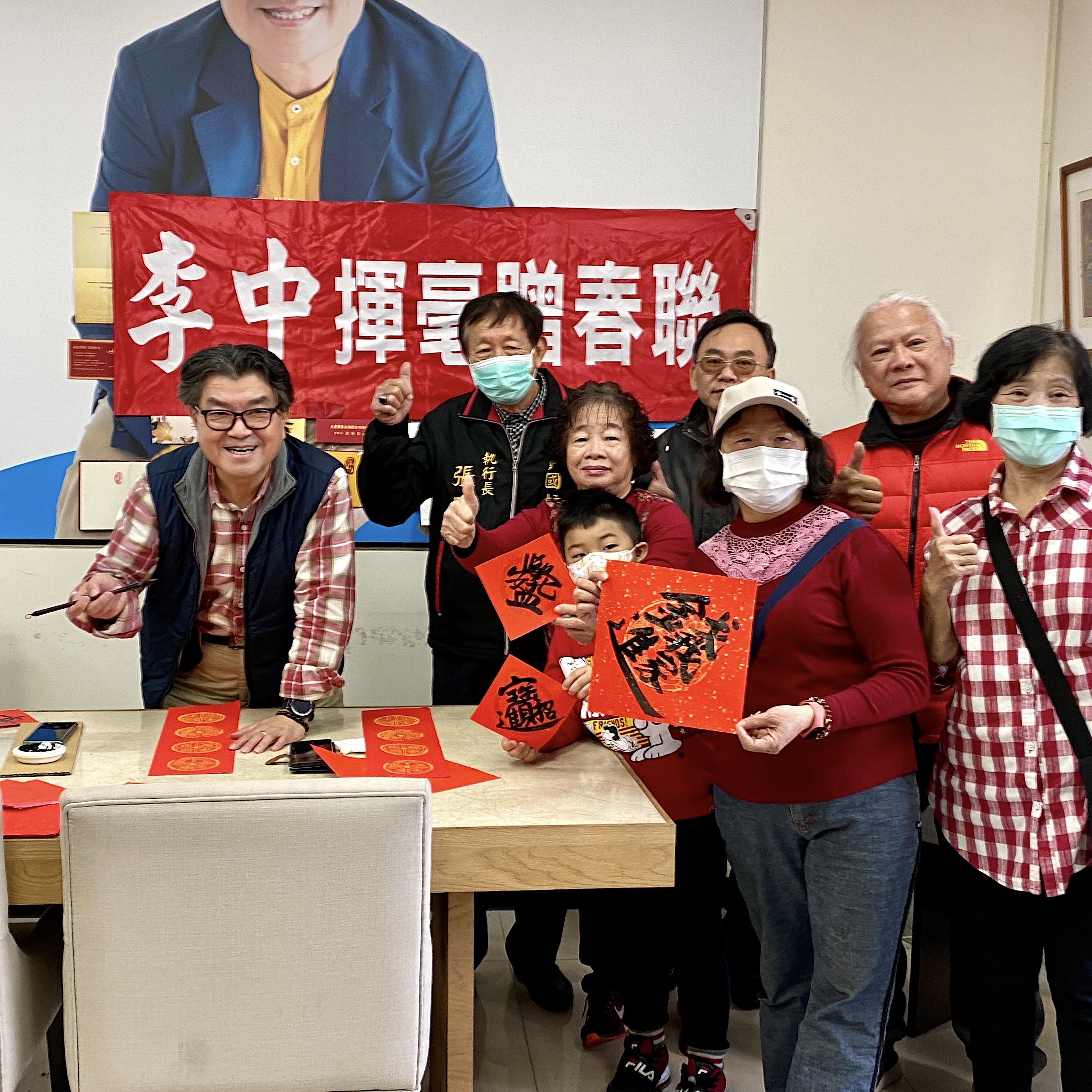 李中議員表示,現在雖然到處都可以買得到春聯,但印刷的字樣比較死板,鄉親還是喜歡毛筆書寫的春聯,因此他每年都會在過年前,在自己的服務處與一些里長家、福德祠現場揮毫,贈送春聯給民眾來感謝鄉親長年的支持。