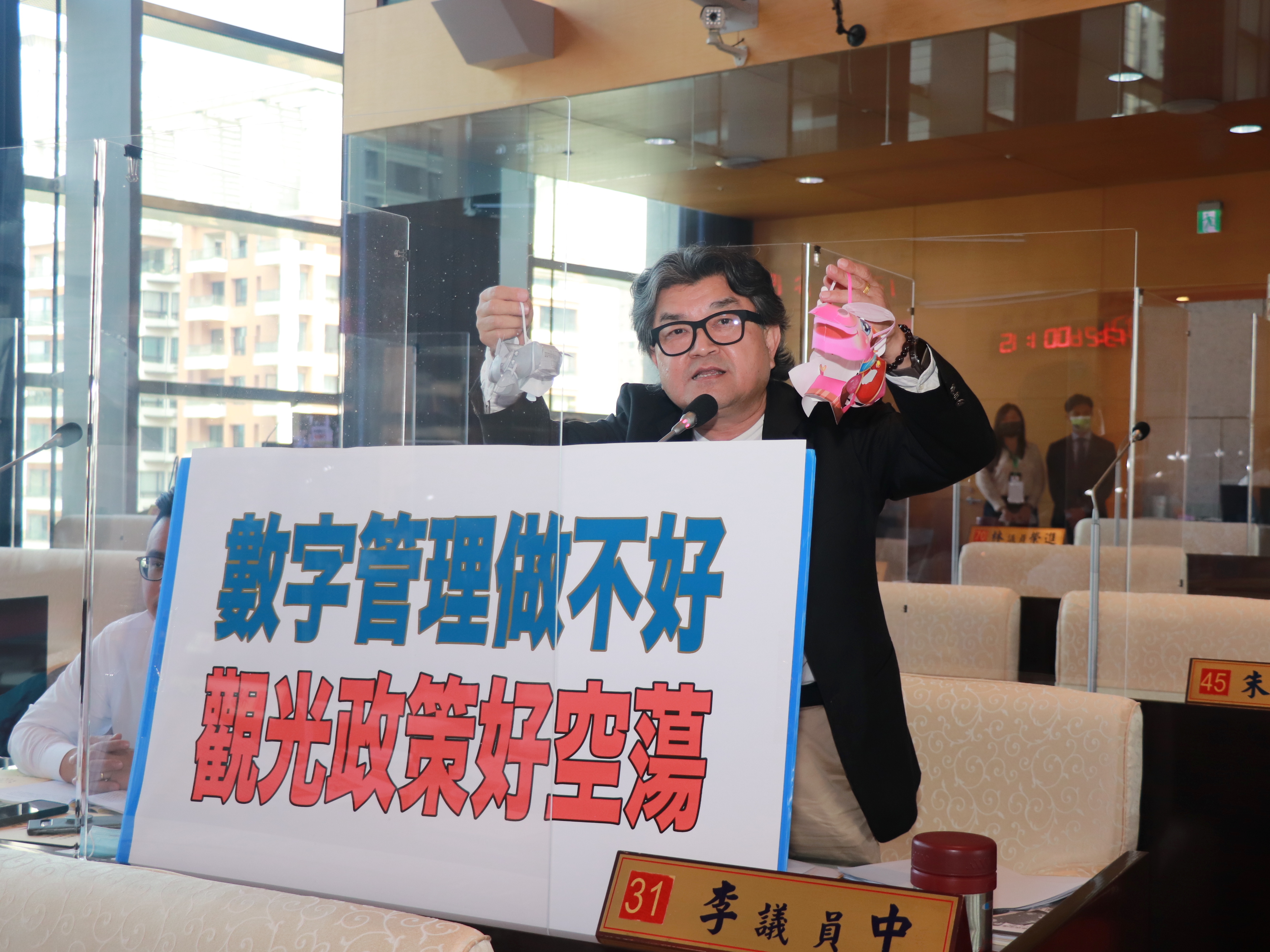 為了讓市府各局日後在決策時,能夠先替市民多想想,他特別走下座位將圖紙發給市長和29個局處的首長,請她們回去後找位巧手的同仁實際組裝,臨時會最後一天的時候再帶到議會來,他也呼籲市長和觀旅局,明年真的不要再做這麼擾民的決策了。