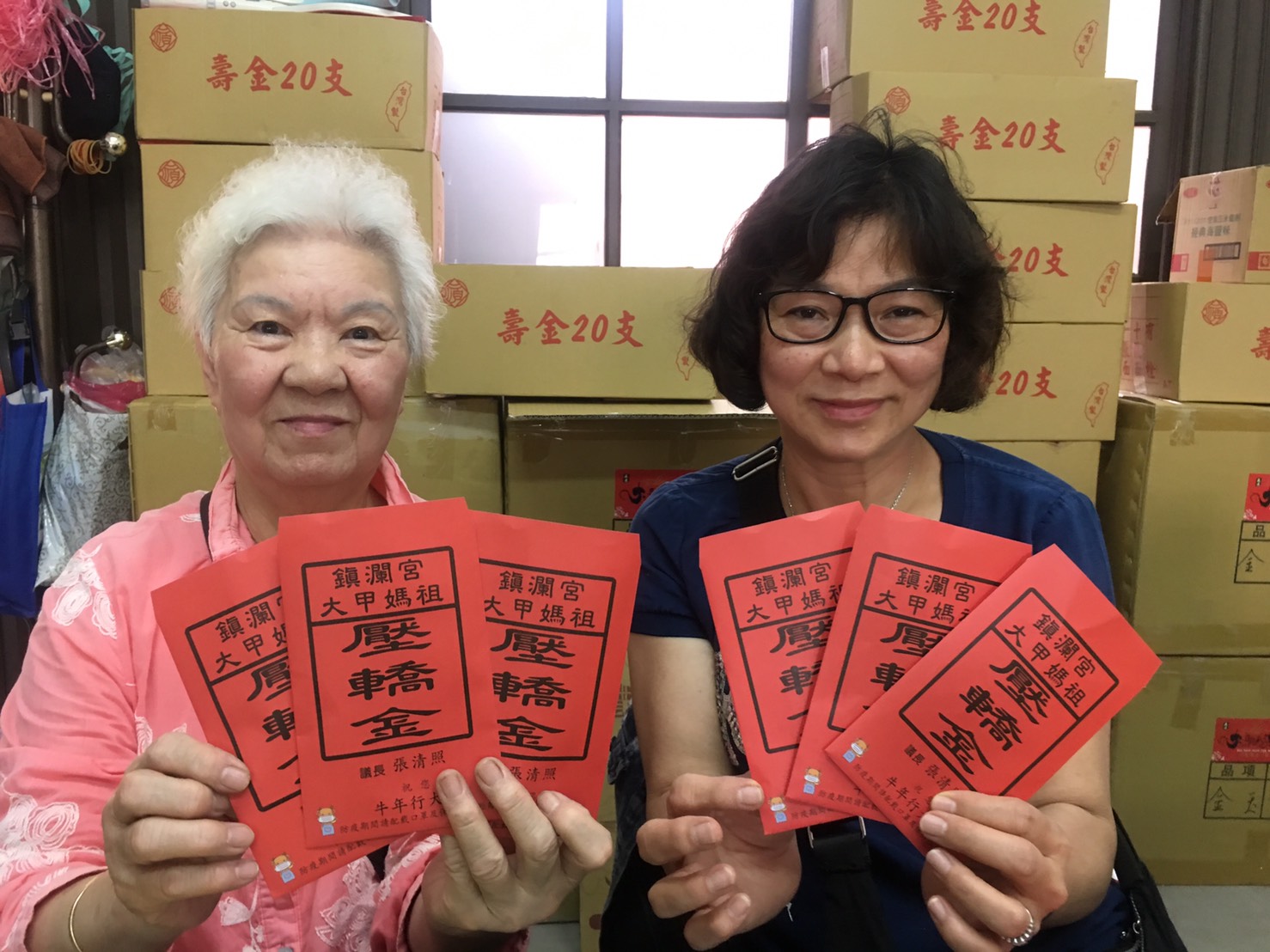 每年大甲媽祖遶境,信徒必搶「壓轎金」,台中市議長張清照服務處每年盛大迎接媽祖回鑾,提供超過四萬份,事前由志工做準備,不少在地鄉親也自動自發來幫忙,今年的志工年紀最大的八十歲、最小的只有六歲,還有志工帶回家做,為媽祖服務的精神令人感動。