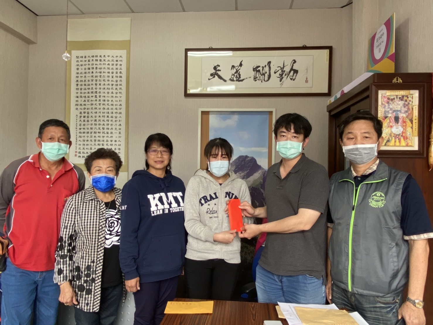今天在服務處台中市政府環保局勞工安全衛生科黃富世股長和新社區清潔隊大隊長江禮憲皆出席帶著財團法人臺中市佑生文教基金會致贈公傷急難救助金新台幣參萬元整,另外還有住院慰問金新臺幣貳萬陸仟元整,是環保局新社清潔隊同仁自發樂愛心募款一併交給司機的家屬,希望能協助家屬紓困度過難關。