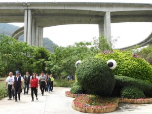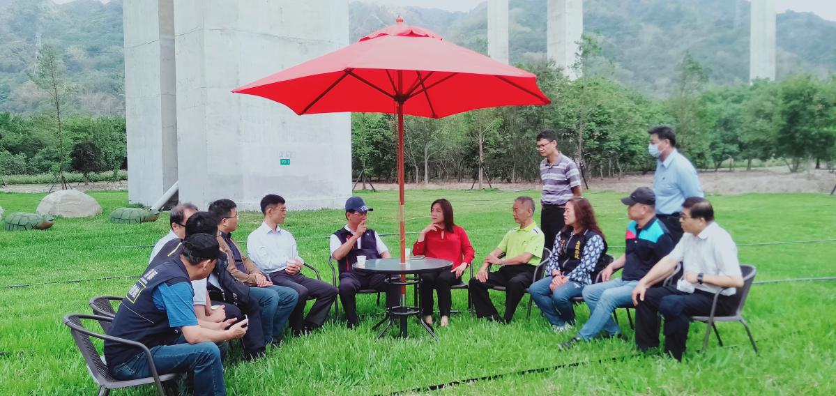 康總工程司也代表高公局肯定縣府對國姓交流道高架橋下空間綠美化的用心與成果,並強調,會全力協助縣府後續提報的相關方案與需求,除依規定加速審查也會盡力促成;立委馬文君則說,高公局是橋聳雲天綠雕園區主管機關,縣府把園區打造的美輪美奐,也是高公局的另一項傲人成果,希望該局能與南投縣府同一陣線全力合作,讓橋聳雲天綠雕園區儘速啟用成為觀光新亮點並永續營運發展。