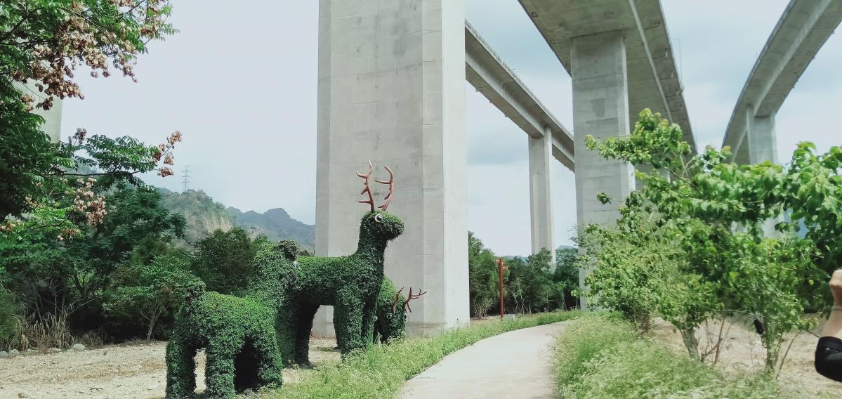 叫我第一名~橋聳雲天綠雕園區化水泥叢林成生態綠園中央地方合作新典範!號稱全台公路八景冠軍的橋聳雲天綠雕園區工程,目前基礎工程及綠雕和綠美化等兩期工程業已完成且亦完成驗收。縣長林明溱、副縣長陳正昇、祕書長洪瑞智等「三長」,特邀請總工程司康志福等高公局官員、立委及縣府各處首長一行,於27日實地探勘這項施工花費逾4千萬元,將高架橋下水泥叢林蛻變成生態綠雕園區的建設成果。