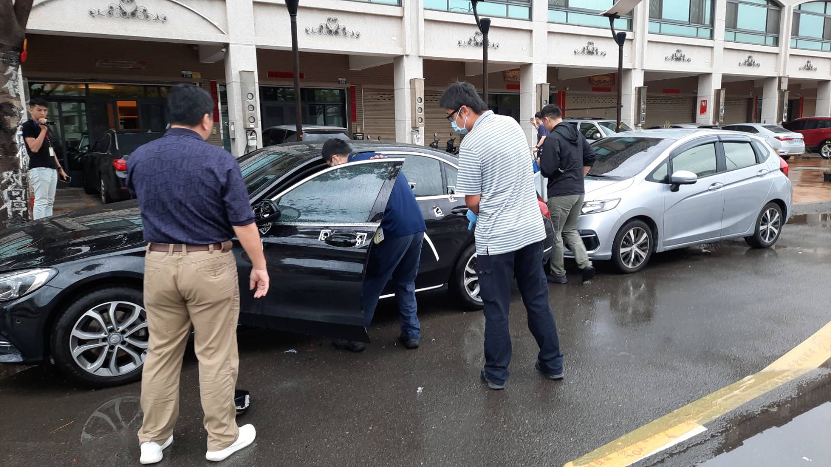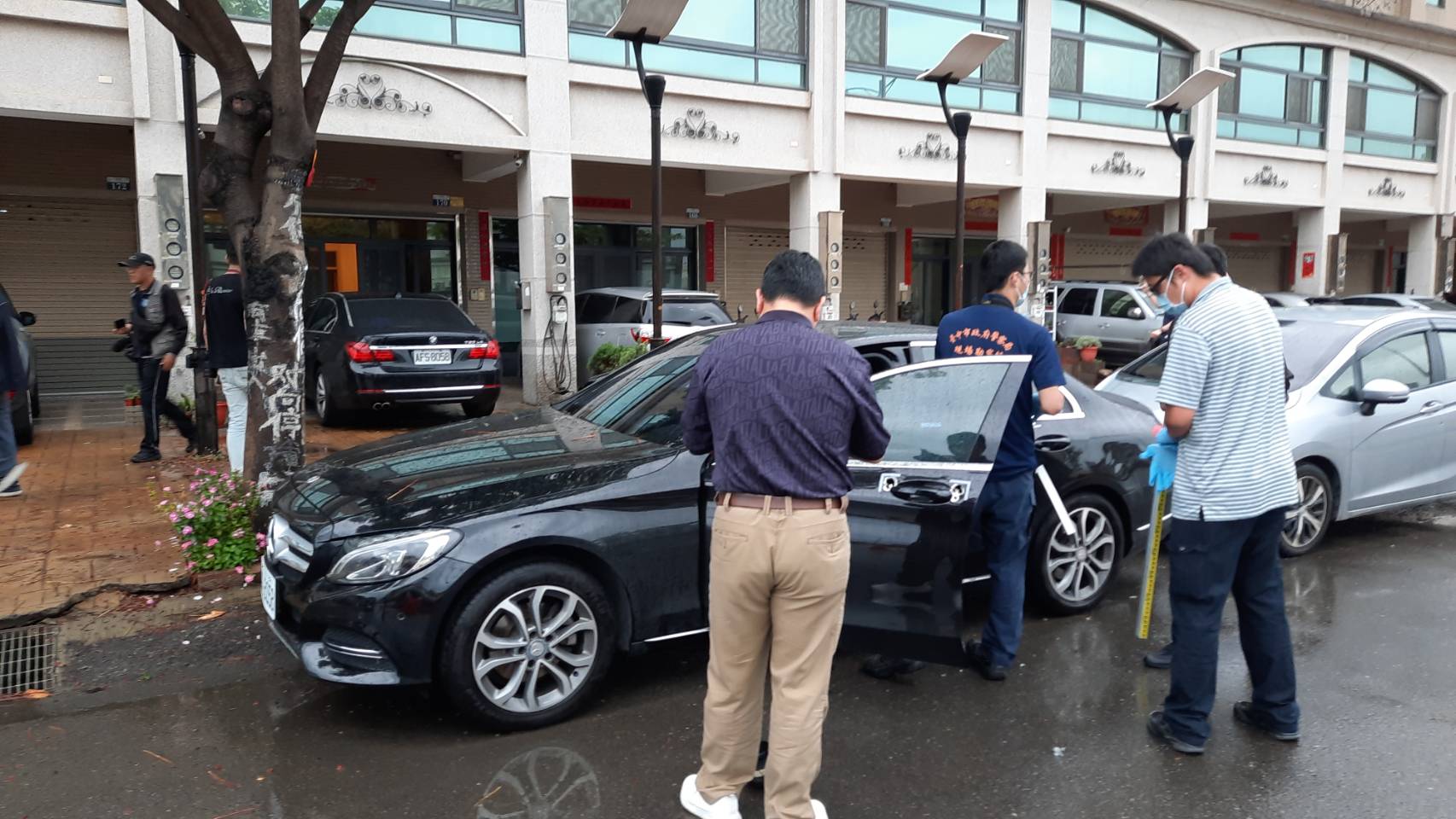 警方獲報到場勘查,一輛黑色賓士轎車遭不明人士持槍開約9槍,從彈孔研判是霰彈槍,現場和車內尋獲塑膠彈殼。
