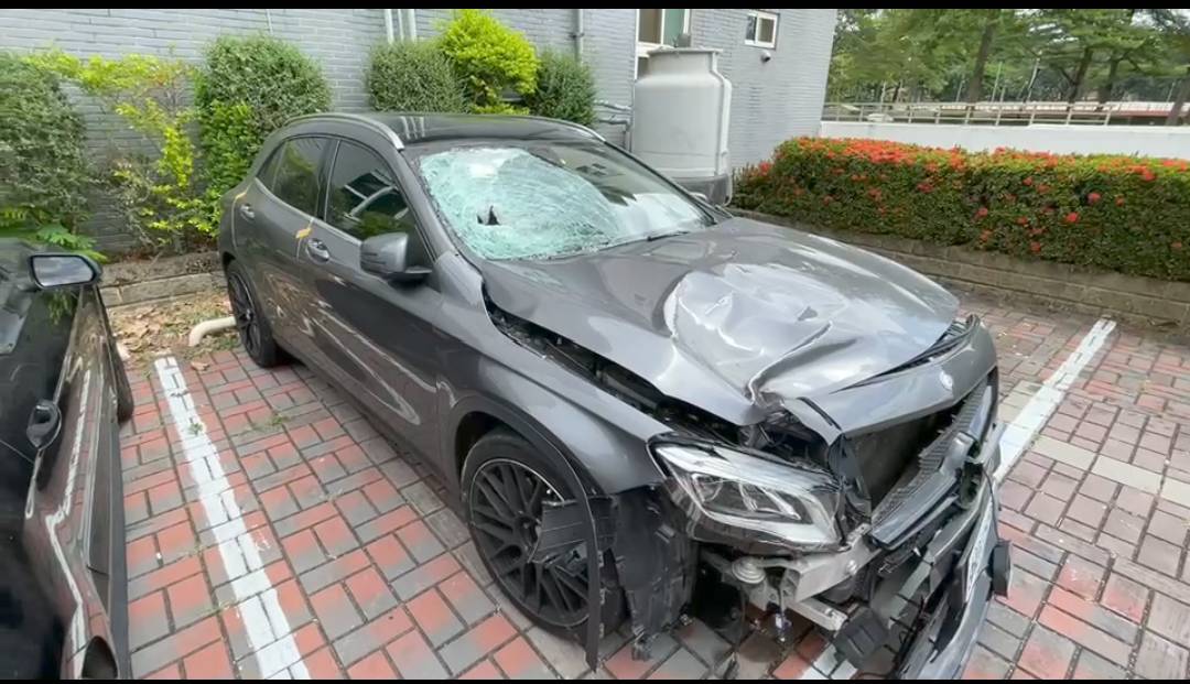 據查,方姓男子是美髮師,在今天凌晨3時許,駕駛登記在妻子名下的賓士車,行經南區東興路一段、樹義一巷時,當時陳姓婦人正經過路口,疑要到附近超商買東西吃,沒想到方沒注意到,賓士車的右前車頭,直接撞上陳婦,巨大的撞擊力,將擋風玻璃撞出一大片的蜘蛛網紋。