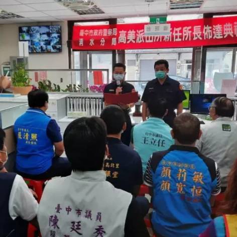 台中市清水警分局今天舉行大秀、清水、大楊及高美派出所新任所長佈達,清水分局長張啟祥期勉新所長,持續做好治安、交通和為民服務。