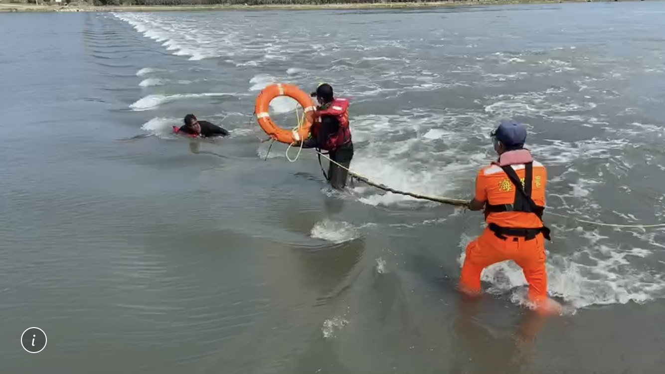 中部分署第三岸巡隊塭仔安檢所安檢人員今日上午,接獲民眾通報,有印尼籍船員於浮動平台洗網不慎跌落攔沙壩受困,本隊同仁旋即攜帶救生裝備前往救援,後續由本隊同仁及現場漁民合力成功將受困船員拉至岸上。