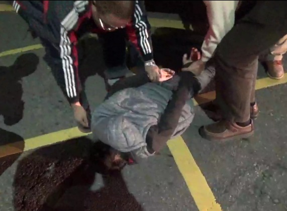 圖說:毒犯遭警方人員壓制。(記者陳羿翔翻拍)