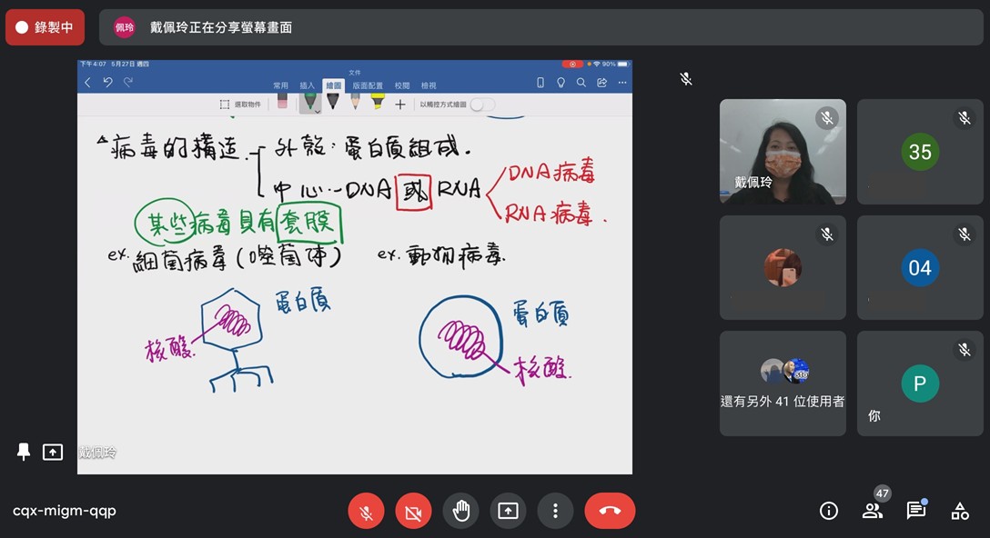 副校長黃苓娟指出,線上教學需要與學生溝通的不只是視訊上課這件事,而是上完課後該做什麼事,考驗學生自主學習能力及自動自發的態度,在一貫的教學堅持下,家長們課後反映各科老師和同學之間很多有趣的互動,也感受到老師與學生的感情深厚,是最棒的鼓勵。