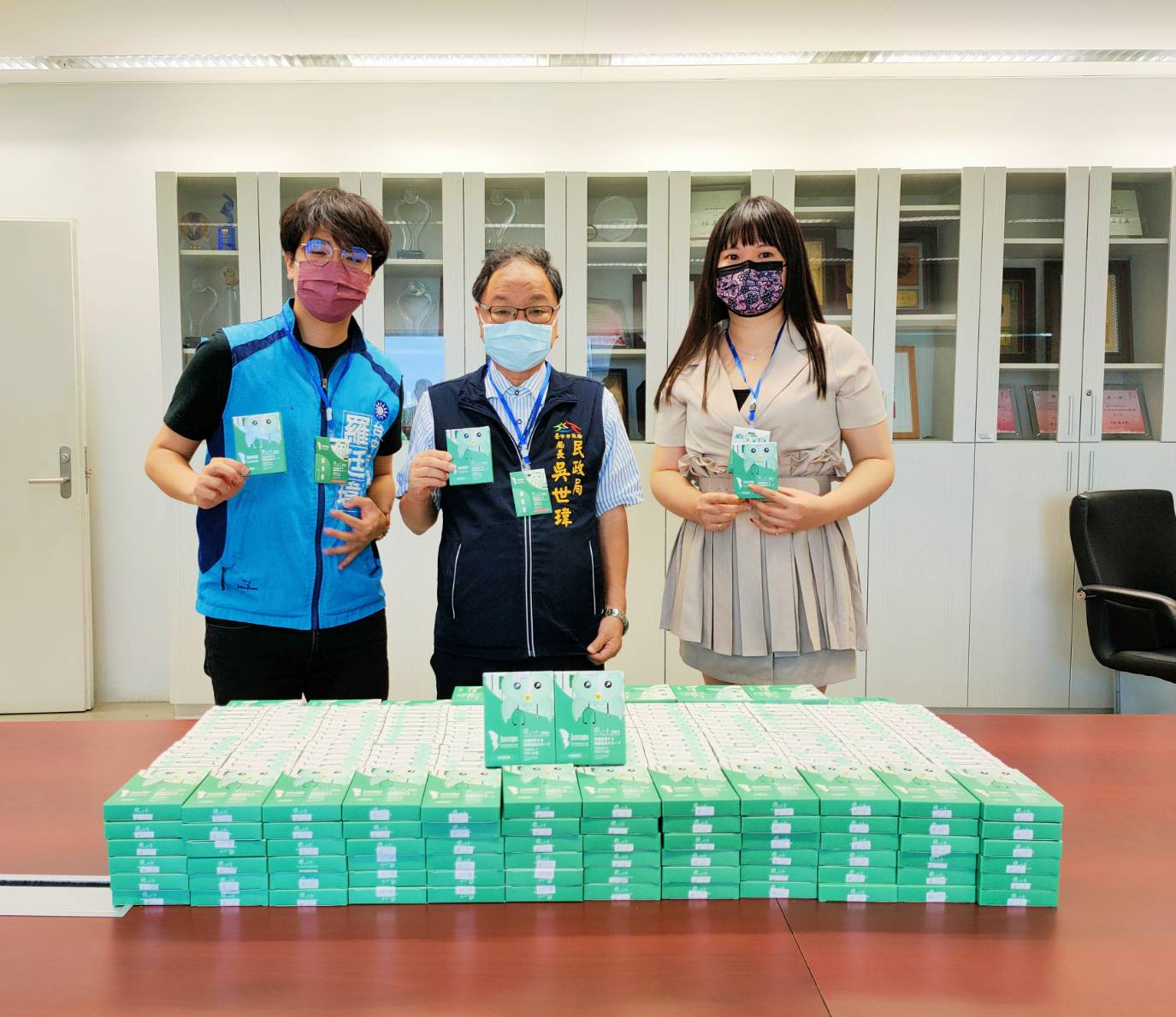 目前全國正處於三級緊戒狀況,防止疫情再度擴散,全國企業各界也都紛紛投入防疫工作。台中市議員羅廷瑋號召台中市各企業捐助物資支援第一線防護人員。岳旺國際有限公司亦在此行列率先捐出一萬片 「綠.小小抗菌卡」 給台中市政府民政局,支援給台中市政府各地疫苗快打站的第一線工作人員配帶,讓第一線的市府防疫同仁再多添一道防護,達到雙重防護效果。