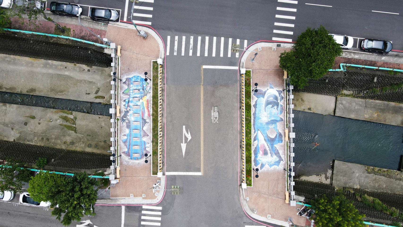 建設局長陳大田指出,此人行橋於108年7月完工啟用,單側長20公尺、寬7.3公尺,因周邊鄰近住宅區及國中、小校區,學童眾多,彩繪圖像特別以探險、驚奇為主題,設計「鯊魚衝出水的大嘴」及「緊張刺激的空中吊橋」為彩繪圖樣,期許孩子們未來充滿無限可能,並勇於挑戰未知人生。