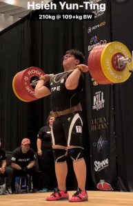 謝昀庭表示,目前生涯最佳成績是抓舉175公斤、挺舉220公斤、總和395公斤,最終以亞洲區累積積分排名第4,順利取得東京奧運參賽資格,非常高興。