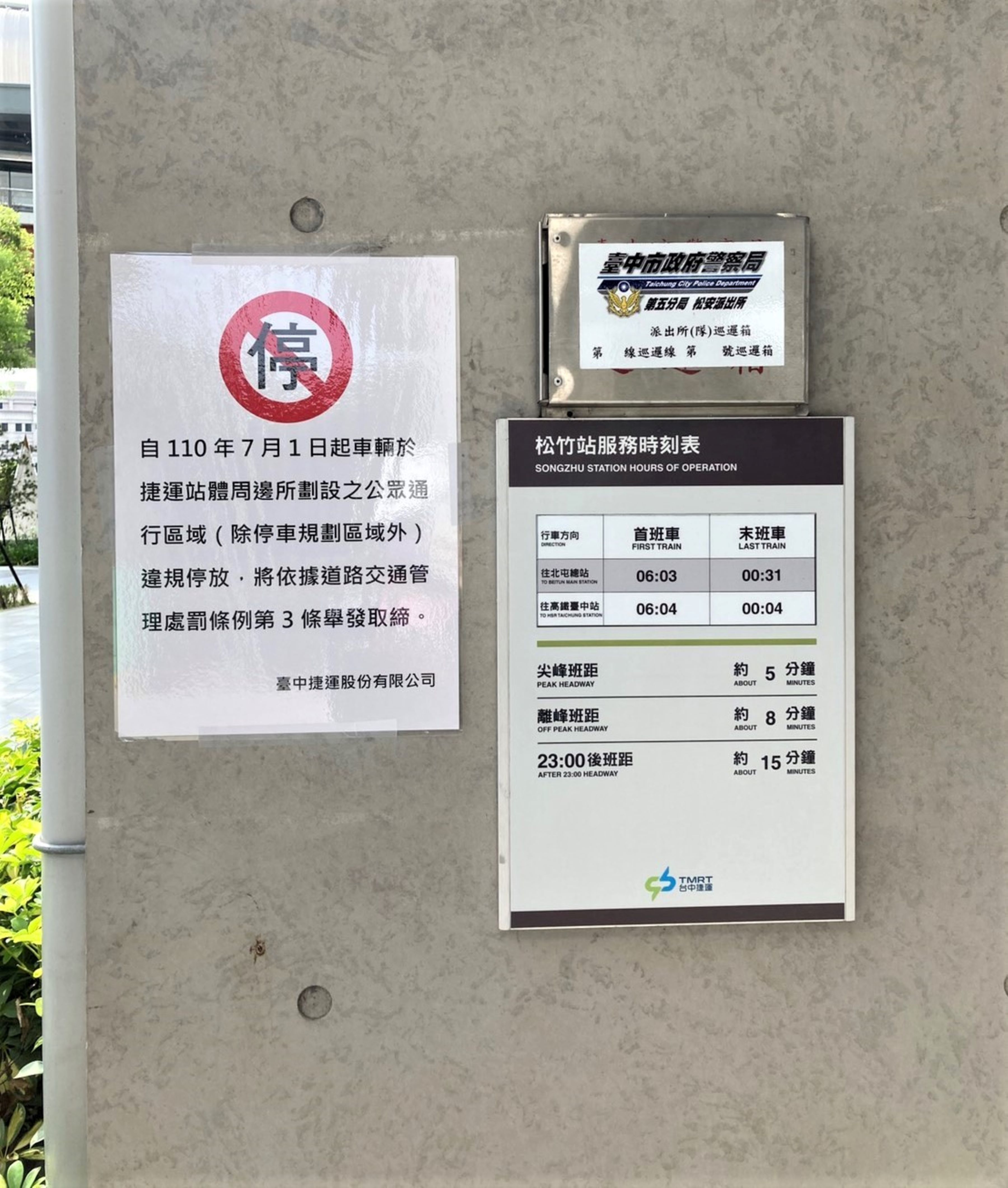 台中捷運公司表示,市府於6月10日公告,7月1日起台中捷運綠線沿線18處車站周邊人行空間屬供公眾通行區域,納入道路範圍,車輛必須依規定停放。中捷公司配合該措施,已在各捷運站周邊人行空間張貼市府公告及公司宣導告示,提醒民眾車輛須依規定停放於合法格位,切勿貪圖方便任意停放。