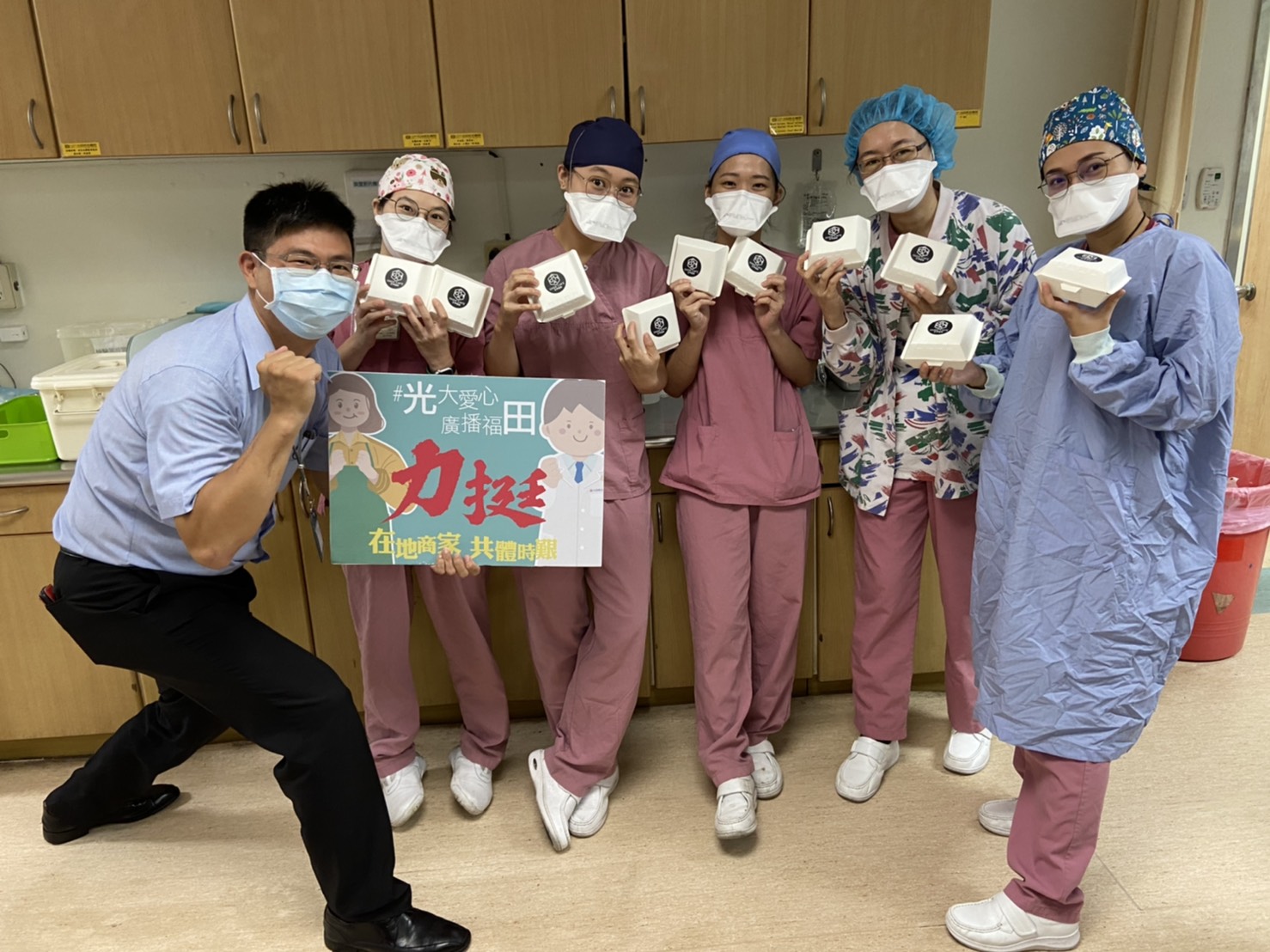 「您挺醫護、光田挺您!」疫情爆發以來,許多商家生意大受影響,頓時收入銳減,但令人感動的是,光田綜合醫院每天湧入各界對醫護的關懷物資,多數都來自受疫情嚴重衝擊的餐飲業。為感謝他們在最艱難時刻站出來挺醫護,光田醫院發起「支持疫情受創商家」計畫,用善款向商家訂購商品,盼支持的力量,能一起挺過難關。